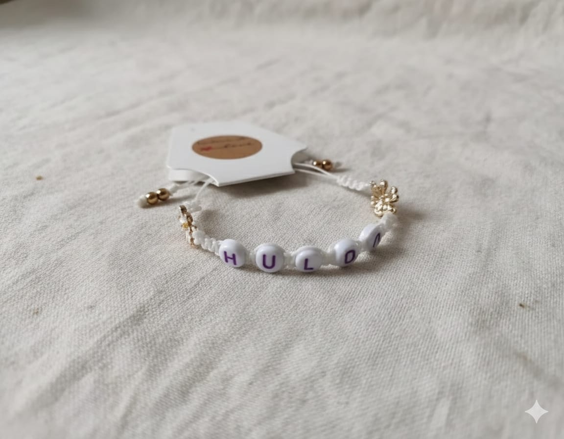 Uma pulseira feita à mão, onde cada nó guarda intenção e cada letra conta uma história. Delicada, personalizada e cheia de significado — um pequeno tesouro pensado para quem aprecia detalhes com alma.